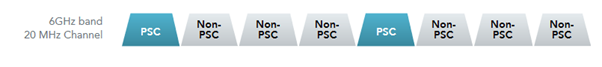 With 1200 MHz of spectrum and 59 new 20 MHz channels, a station with a dwell time of 100 ms per channel would require almost 6 seconds to complete a passive scan of the entire band. The standard implements a new efficient process for clients to discover nearby access points (APs). In Wi-Fi 6E, a process called fast passive scanning is being used to focus on a reduced set of channels called preferred scanning channels (PSC). For 6 GHz-only operation, a specific subset of channels will be identified as preferred scanning channels (PSC) where the primary channel of a wide channel BSS should reside, limiting the channels a client needs to scan to discover a 6 GHz-only AP. PSCs are spaced 80 MHz apart, so a client would only need to scan 15 channels