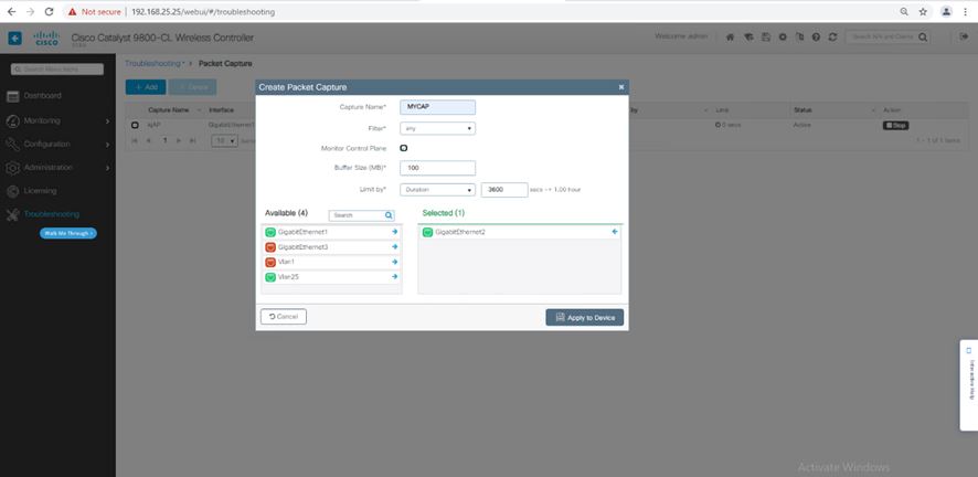 Tip: If we don’t have any ftp/tftp/scp/sftp server to copy the capture it can be saved into harddisk or bootflash and retrieve it from WLC GUI using File Manager.
