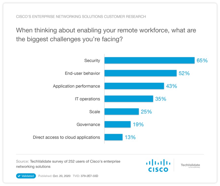 For instance, many enterprises thought there was absolutely no way their entire workforce could get the job done without coming into the office. In fact, working at Cisco for the last 20 years, I made it a priority of mine to be in the office every working day. But take a look at what happened; in the face of immense change, our employees flourished. Many discovered they got more work done at home than at the office. They benefited from spending more time with their families and less time stressed out from long commutes. In a recent UK study, “almost 90% would like to continue working from home in some capacity, with almost half wanting to work at home often or all of the time.”