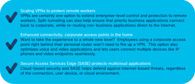 When we re-think what it will take to bounce back from any disruption, the employee stands at the heart of it all. Extending the network to wherever users are—while not easy— is the future. After all, the network provides our employees the secure access to applications and data they need with the enterprise-grade network performance they’ve come to expect, whether they are at home or in the office.