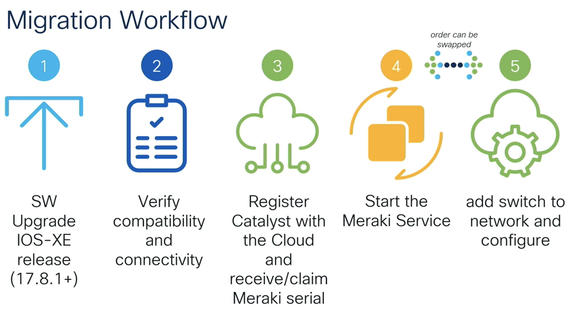 - Cisco IOS-XE 17.8.1 version (or later) is required for the Cisco Catalyst 9300 switch to be migrated to Meraki Mode and managed by the Meraki Dashboard.