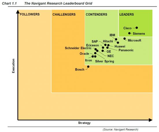 “Cisco’s position as the leader in the smart cities market is based on its integrated perspective on urban innovation, strong sector-specific solutions, and a commitment to continued thought leadership and city engagement,” noted Eric Woods, research director at Navigant Research. “With the development of its connected digital platform and a range of vertical solution offerings, Cisco is providing an integrated environment for cities moving to IoT-based solutions and at the same time putting its smart city program onto a stronger commercial basis.”