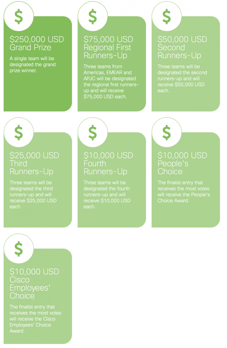 Knowing that the need to support this type of entrepreneurship has never been greater, we have increased the total prize pool to $1 million USD, with the grand prize winner receiving $250,000 USD.