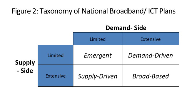 My colleague, John Garrity, and I focus on this question in our GITR chapter examining national broadband and ICT plans. (Chapter 1.3, “Convergent Objectives, Divergent Strategies: A Taxonomy of National Broadband and ICT Plans”)