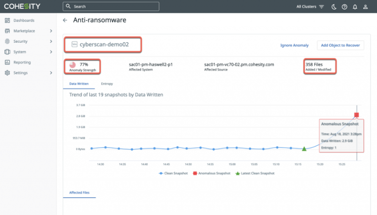 When developing your security posture to include cyber threat defense, it is vital to include a comprehensive focus on protecting your organization’s backup–the last line of defense–and predictable recovery at scale. This focus includes putting in place a security platform that prioritizes data protection with unified visibility and automation to optimize the time and resources enterprises spend to detect, investigate, and remediate ransomware threats.
