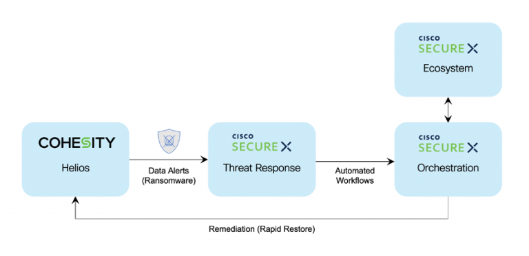 To help organizations combat these types of threats and gain deep visibility, Cisco and Cohesity have integrated Cisco SecureX and Cohesity Helios to automate detection, response, and recovery in the face of ransomware attacks. This is the first data protection solution integrated with SecureX, ensuring data-level security in addition to securing networks, clouds, endpoints, and applications.