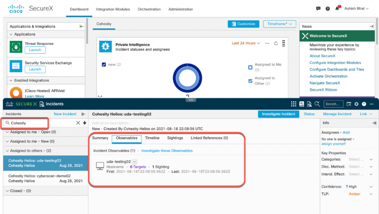 Helios allows for automatic scanning of backup data to check for anomalies that indicate potential ransomware and communicate such alerts to SecureX. In addition, you can enable the Private Intelligence dashboard tile in SecureX to show a visual indicator notification when Helios (or other enabled integrations using this feature) register new incidents (Figure 5).