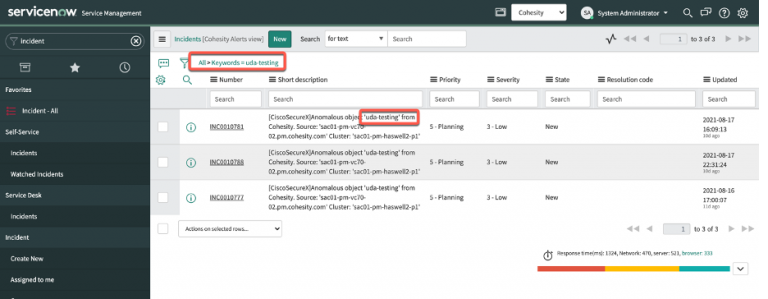An additional integration with Cohesity ServiceNow through SecureX helps speed incident response, opening a ticket automatically to initiate broader team coordination via workflow in the event of a cybersecurity attack–and orchestrating the initiation of data recovery when needed (Figure 7).