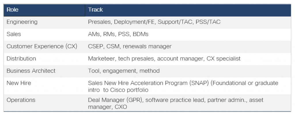 This year, there have been considerable updates to the learning maps for many different roles (see table below). As you can see, we cover topics from the C-suite to the support and all roles in between. This role-based enablement approach can benefit anyone directly contributing to great customer interactions.