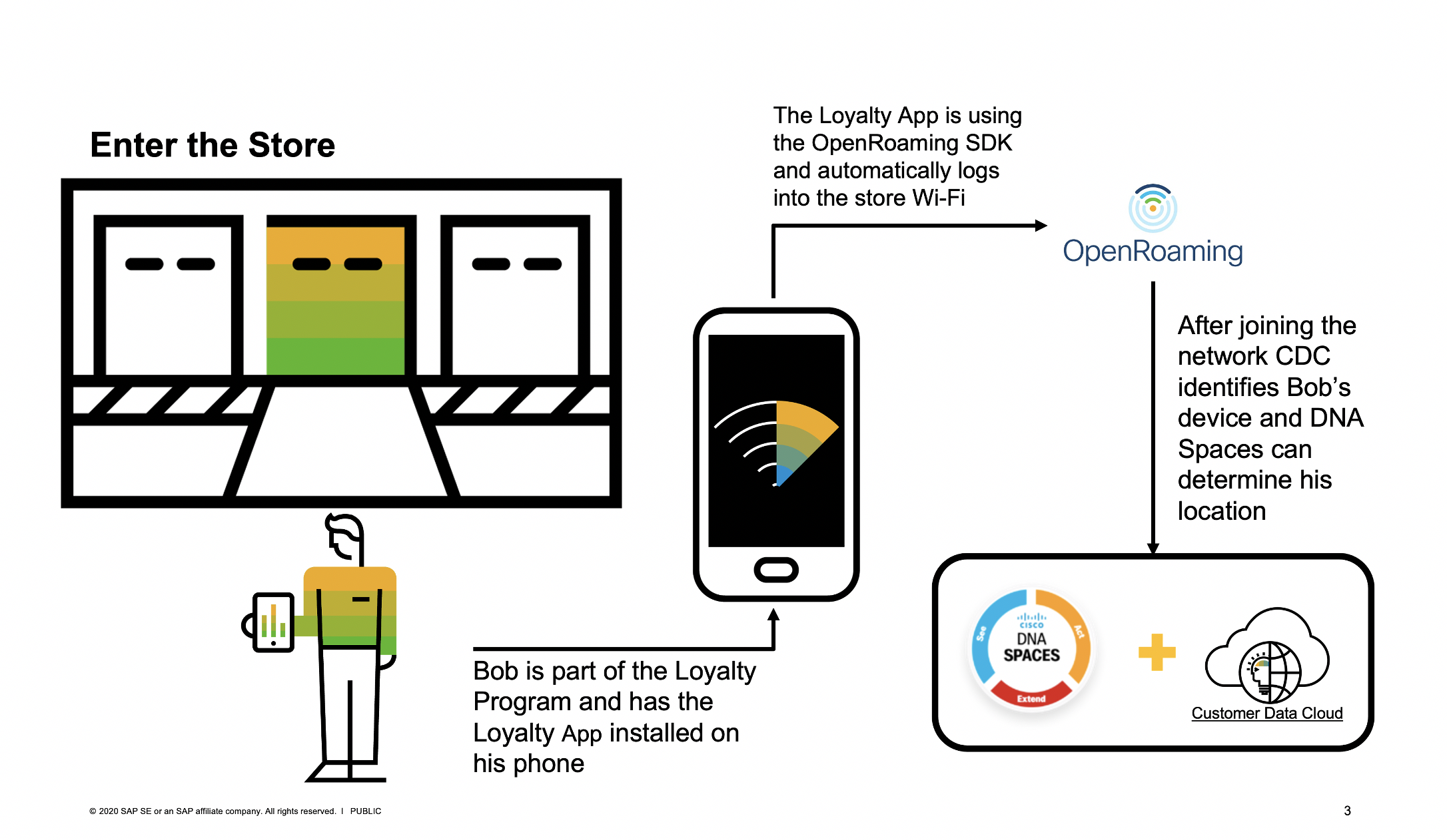 To begin, the customer’s OpenRoaming ID is matched with their loyalty number in SAP’s Customer Data Cloud, which is the database that supports many loyalty apps. This database is where companies manage both customer and consent information.