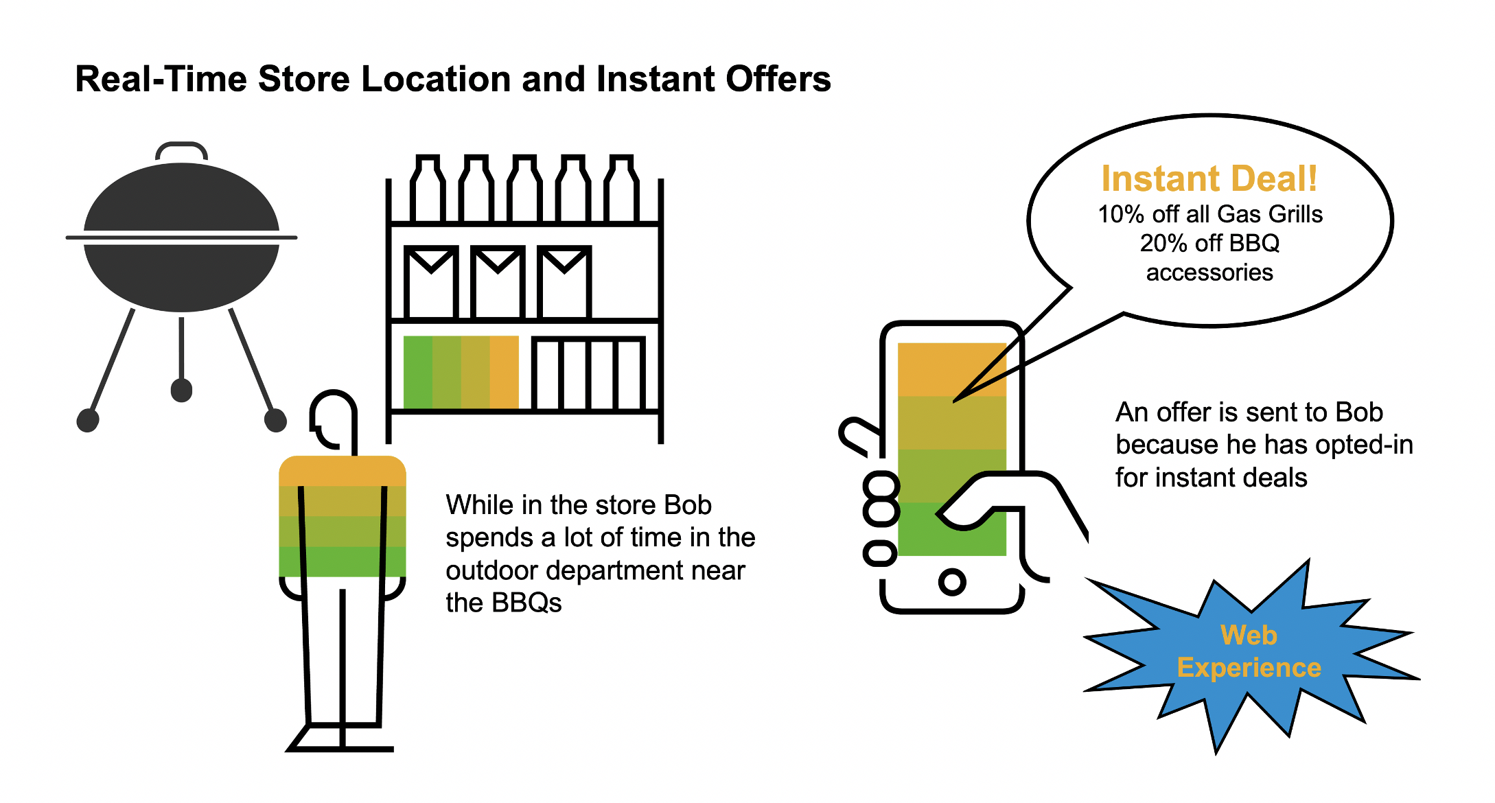 In addition, through the integration of the SAP Marketing Cloud with the SAP Customer Data Cloud, personalized newsletters can be sent to the customer after they have left the physical location. For example, a personalized newsletter can include additional information about barbeques, such as what to look for when buying one or upcoming barbeque sales.