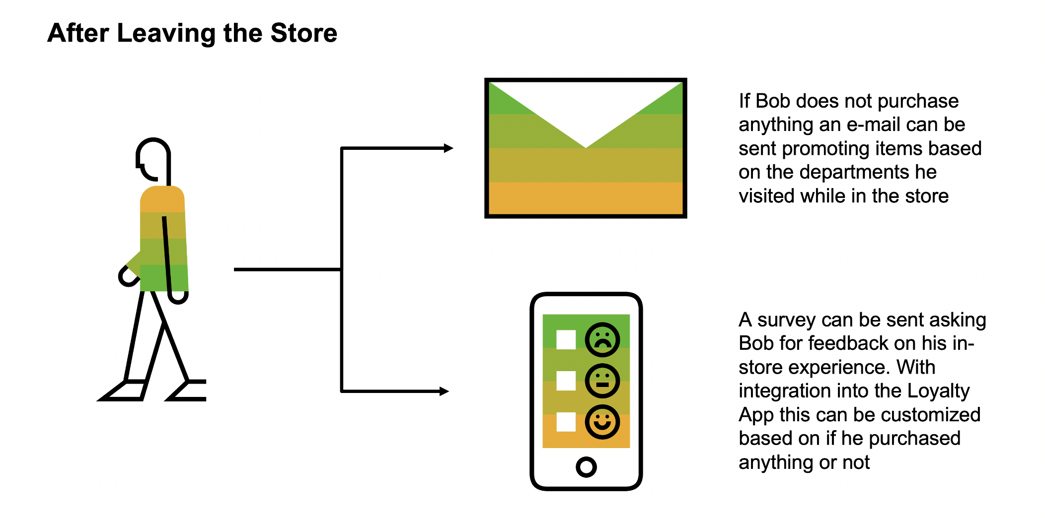 The journey starts with a company loyalty program, frequently offered through a mobile app. When a customer downloads this app, they enter their profile information and set their consent preferences to control the types of communications they receive. Email and app notifications are examples.
