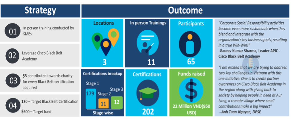 Continuing the momentum, here we are with yet another philanthropic initiative—”Black Belt Certification for a Reason”—a one-of-a-kind campaign that addresses not only Cisco Vietnam’s business goals but also caters to the essence of giving back to society.