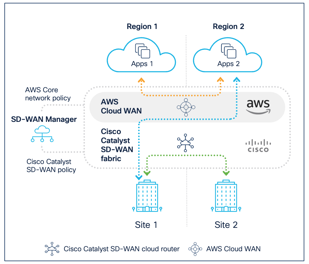 Learn how Cisco and AWS have co-innovated to enhance the experience of our joint customers by extending Cisco SD-WAN across the global AWS cloud network, interconnecting enterprise sites and cloud workloads, using the Cloud WAN backbone.