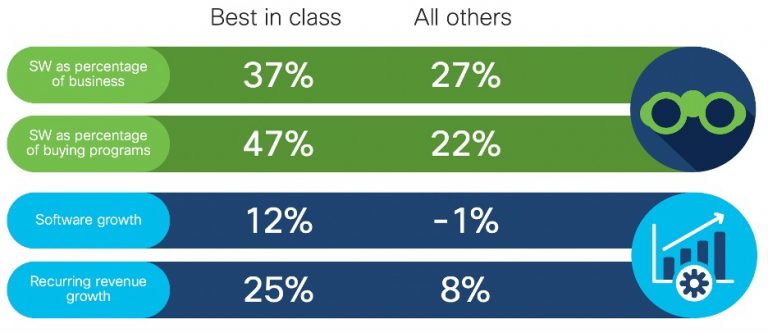 But our best-in-class partners are focused on driving software sales as lead motions in their go to market. In fact, they’re driving buying programs nearly half of the time when they engage a customer. And they’re experiencing 12 percent software growth year over year. They’re also experiencing 25 percent growth in software-based recurring revenue in a very challenging market, while many other partners have experienced flat-to-down revenue.