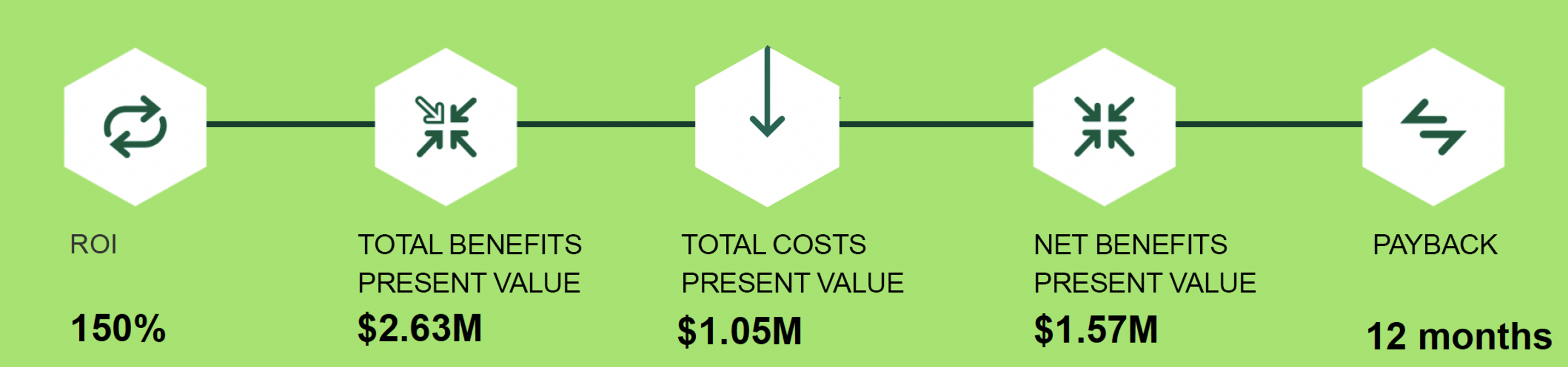 Let’s just cut to the chase: Our joint solution delivers an overall return on investment (ROI) of 150% in three years for the modeled composite organization. The payback period was just a year, and the total benefits present value realized was an impressive US$2.63 million.
