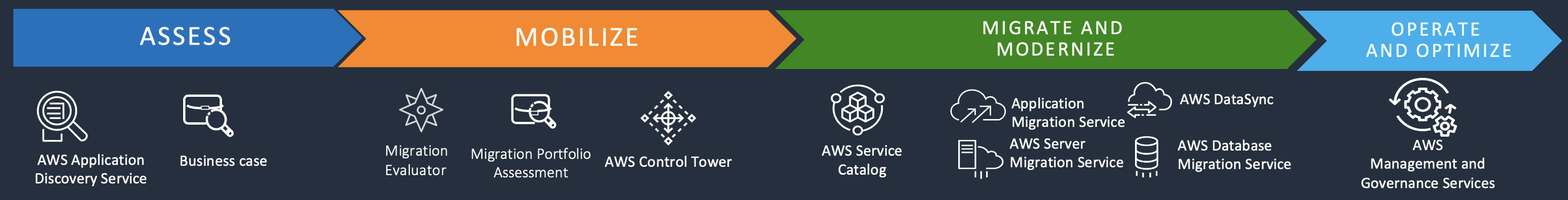 Let’s begin with a high level, conceptual view of the AWS Cloud Migration Framework. As shown in Figure 1, AWS offers their customers a four-stage cloud migration.