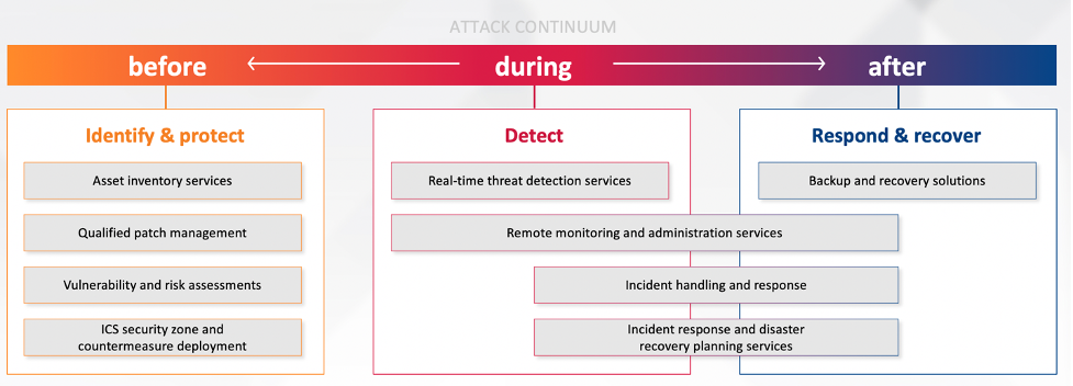 To help industrial customers improve their security postures, Rockwell Automation offers a portfolio of world-class industrial cybersecurity services (Figure 1). These services follow the NIST Cybersecurity Framework. At a high level, they help customers build a more secure, robust, future-ready network for their connected enterprises by providing assessment, design, implementation, and monitoring solutions.
