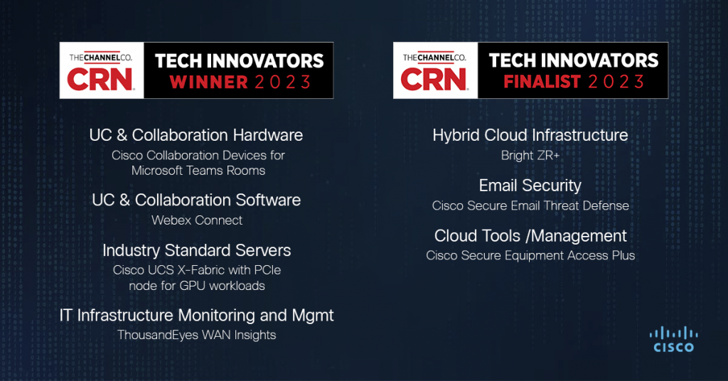 We all feel the customer demands fueling a high pace of change in innovation. Cisco and our partners are delivering to these needs, to meet these shifts driving a new market scape. Technology migration is happening in networking hardware, data storage systems, and sustainability around power management systems. This results in innovative products areas such as automation, edge computing, IoT, hybrid work, and cloud. The CRN Tech Innovation Awards honor products that offer ingenuity and technological differentiation that are of value to global partners and customers.