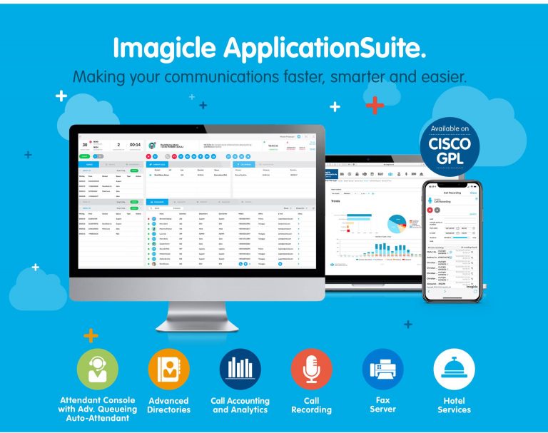 The Imagicle ApplicationSuite has always been firmly rooted in flexibility and simplicity. Flexible, because customers can run Imagicle ApplicationSuite alongside Cisco Calling platforms such as Cisco Unified Communications Manager (UCM) on premises, hosted, and in the cloud. Simple, because Imagicle provides a complete portfolio of unified communications calling applications, managed through a single pane of glass.