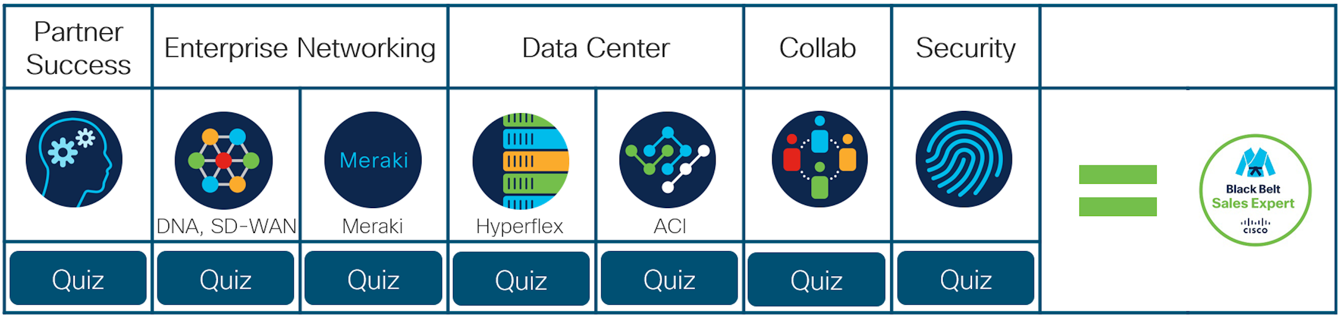 In martial arts, black belts are often a coveted symbol that you’ve put in the time to become an expert in something. And it’s the same here. After you take all your training and exams, you get a badge for finishing the Stage 1 learning maps. If you want, you can then move on to the deeper Stage 2 and Stage 3 learning maps, which come with their own badges, but also require you to apply the knowledge you learned to your company’s business. Only when you proved that you applied the knowledge and successfully close a deal will you be able to call yourself a Cisco Partner Academy Black Belt.