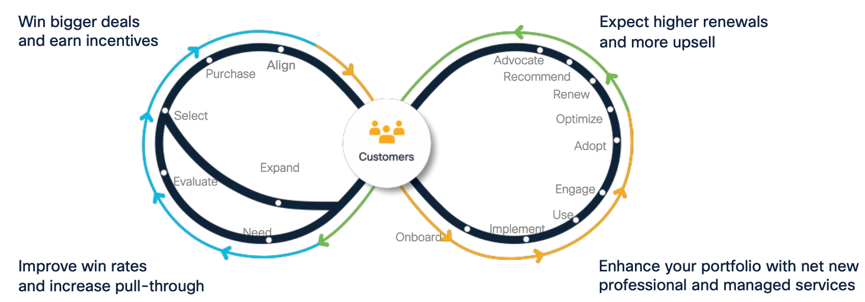 Today, Cisco partners have more customer data and insights to help them identify and capture services opportunities, accelerate customer outcomes, and provide greater value. This leads to happier customers with a greater propensity to buy more products and services, further leading to increased revenue for partners and greater Cisco rebates and incentives.