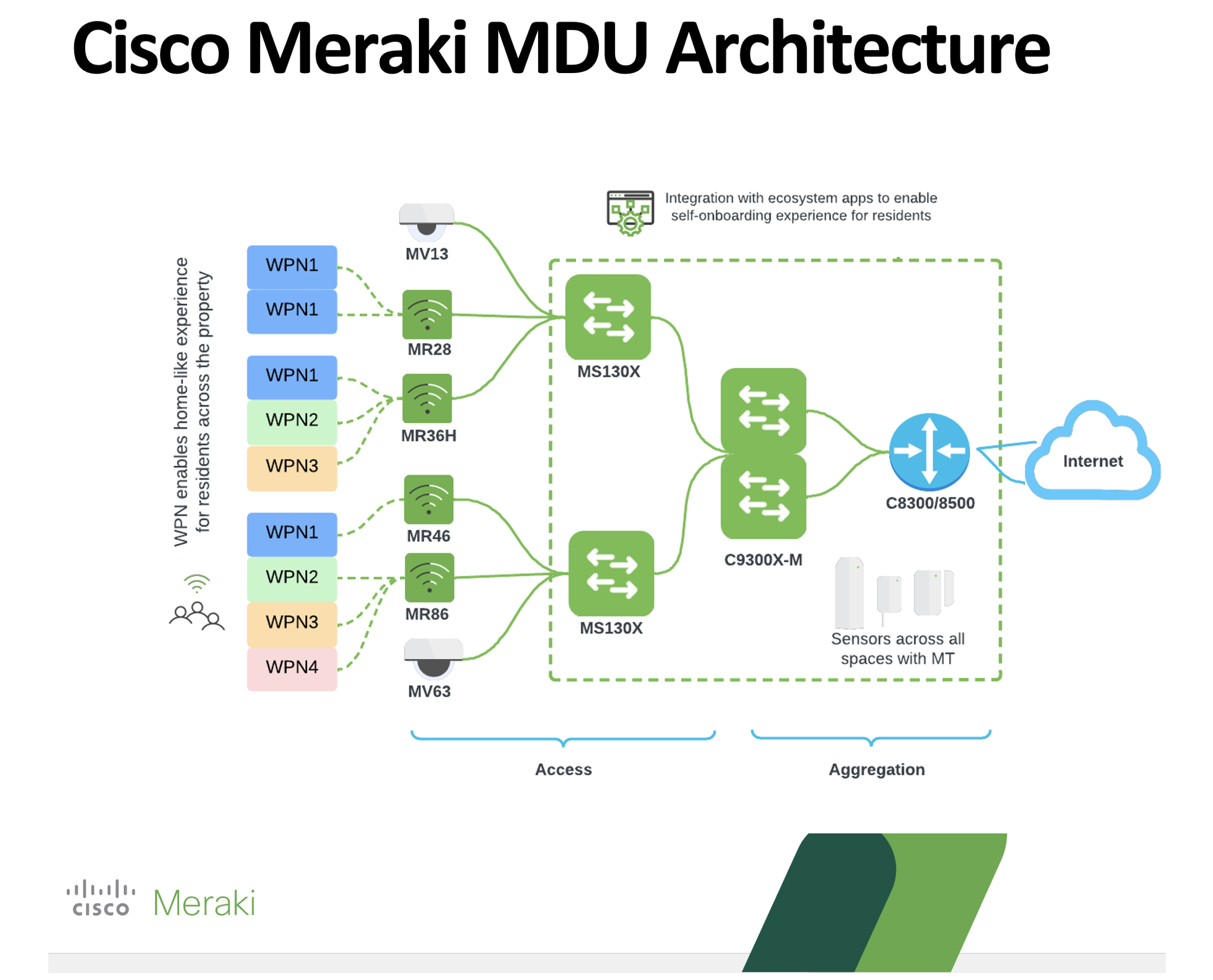 The Cisco Meraki platform can significantly enhance the MDU experience by integrating with third-party solutions like SplashAccess.