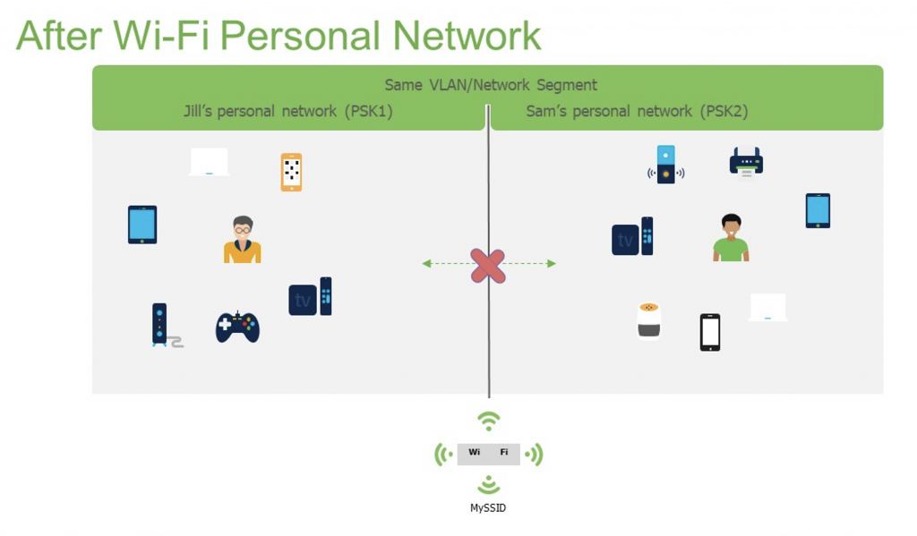 All user devices using the same password to connect will automatically be part of the same WPN, ensuring that the users will only discover their personal devices when searching for services on the network.