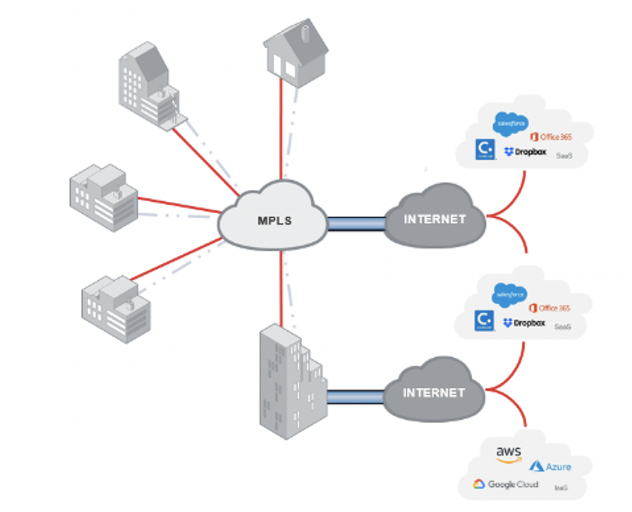 StarHealth’s IT team faced a difficult challenge–providing connectivity to these mobile sites. Internet connectivity into the existing fixed location facilities was delivered through a rigid, MPLS-based network from a single carrier, as shown in Figure 1. With this legacy WAN architecture, it took more than two months to connect one new site. Meanwhile, the requirement to connect a mobile pop-up clinic was just two days.