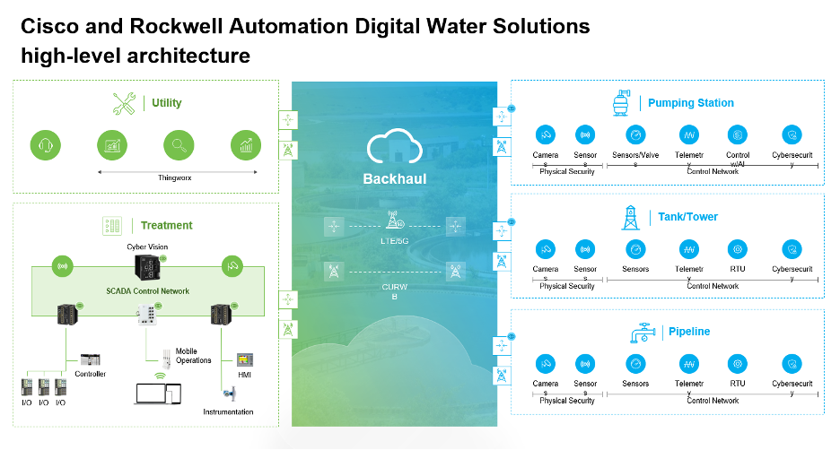 Cisco and Rockwell have joined forces to build a water distribution pressure management solution, thereby improving the operation of water and wastewater systems. This near real-time solution notifies water utilities of anomalies that could be caused by leaks—helping reduce not only water loss but also save energy.