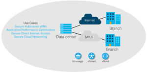 - Basic SD-WAN functionality for one data center and two branch locations.