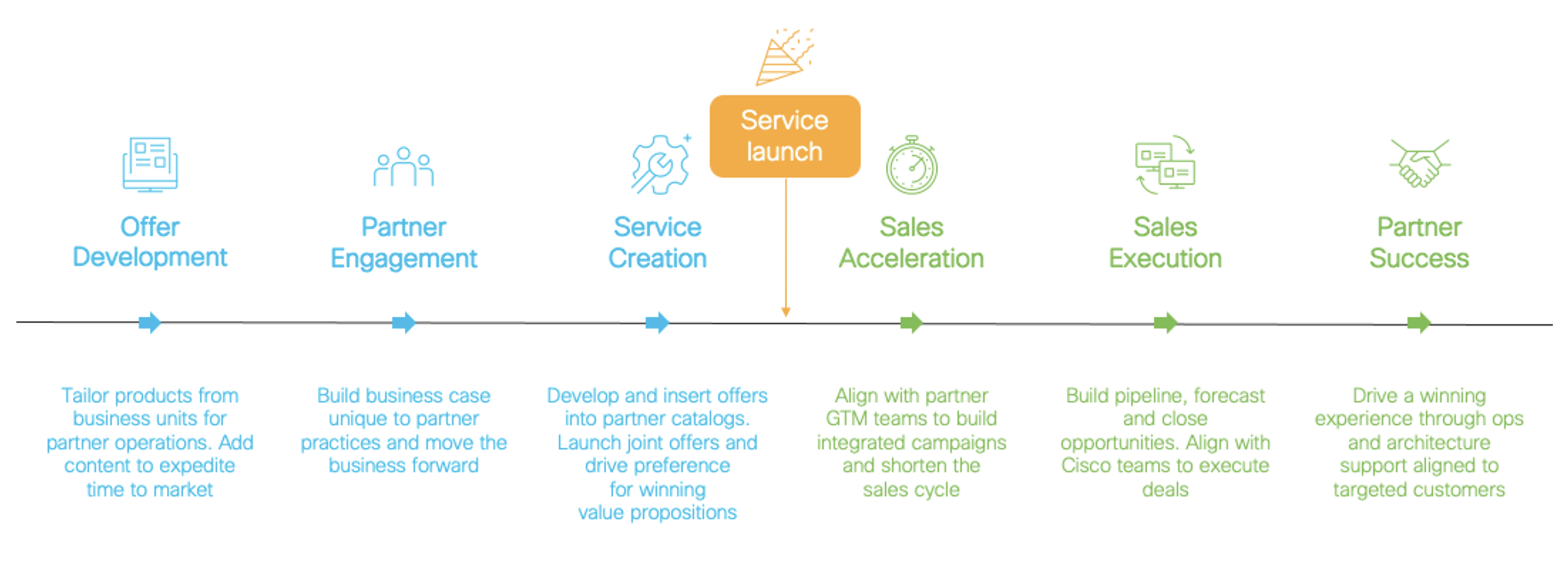 - Service Creation occurs when a partner formally builds a new service with Cisco support in the form of templates, best practices, cutting edge market research, and best-in-class expertise