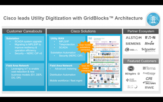 Interesting read – agreed, it's definitely a partnership opportunity. Cisco's approach to GridBlocks architecture is unique in that it approaches the grid in it's entirety from the prosumer through every facet of generation, delivery, and expandable to meet growth of new sources. It's difficult to speak of transformation without getting this kind of holistic perspective or at least the interdependencies. The foundational architecture opens up new possibilities to build upon in the partner ecosystem.
