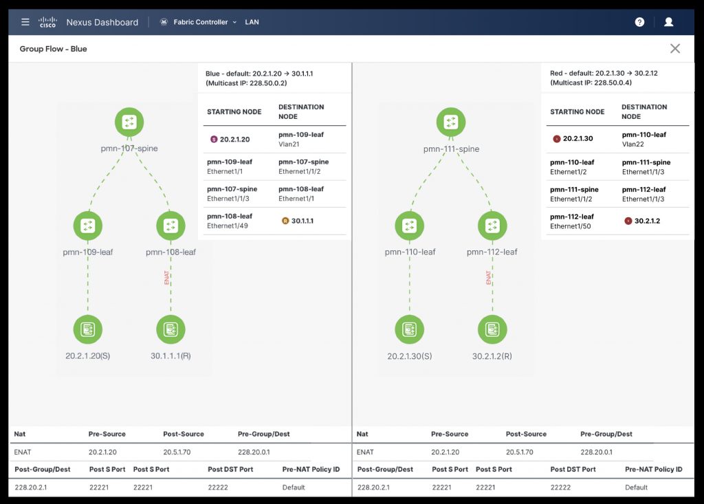 - ST 2022-7 Fabric Redundancy Visualization with NDFC: As broadcasters continue to embrace IP, SMPTE 2022-7 allows broadcast end points to send and receive redundant streams, that will allow in case of errors to preserve integrity of the stream. Transport also allows redundancy, by building redundant paths. Corelating these paths through network can be a challenging task. In NDFC, we will further enhance visibility by providing a side-by-side view of the red and blue fabrics so enabling operators to monitor both network paths in tandem, ensuring a seamless flow of content.