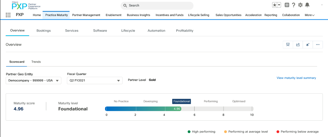 To provide this level of insight, Cisco combined 60 metrics to understand behaviors and indicators associated with profitable practices. As an example, we have considered automation and customer success practices; and how partners and their customers adopt products and services are reflected in the Maturity Score with Automation and Lifecycle.