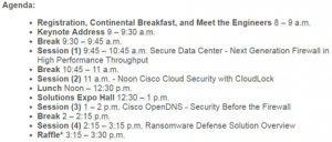 After the keynote, there were four breakout session groups with lunch after the second breakout session. I decided to go with the security sessions as I am a part of the cyber security industry. The first session I attended was the “Secure the Data Center – Next Generation Firewall in High Performance Throughput” and it was pretty interesting as they were discussing ASA, FirePOWER and Firepower Threat Defense (FTD). This session was useful as it relates to the Cisco Certified Network Associate (CCNA) Security certification since FirePOWER and FTD are now a part of this certification. The second session was about Cisco Cloud Security with CloudLock and it was pretty interesting. The speakers in both sessions had extensive knowledge of the topics and were very professional in their presentations.