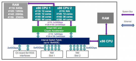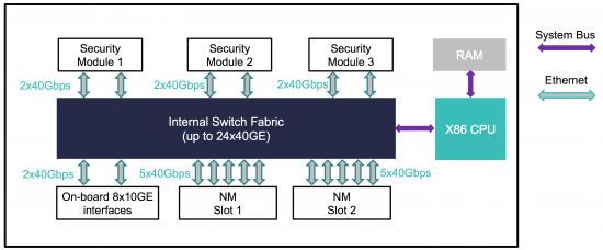 As seen on the image above, the 4100 series only have one security module compared to the possible three security modules in the 9300, but the architecture is the same as in its older brother.