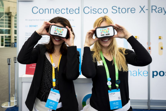 We wanted to put this developer platform to the test in Cisco’s own retail environment. The Connected Cisco Store onsite at Cisco Live included many digital solutions (a smart fitting room and MV32 people-counting security cameras, just to name a few). In light of the developer announcement, the team joined forces with DevNet’s Co-Creation group and an external partner to prototype an Augmented Reality solution, giving shoppers X-ray vision into what solutions are working behind the scenes for the retail environment.