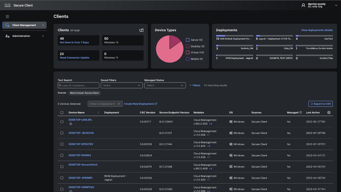 With the SecureX End of Life (EoL) quickly approaching on July 31, 2024, we want to ensure you have accurate information on how you will be able to continue accessing Cisco Secure Client Cloud Management capabilities. Client Management capabilities are not going away as part of the SecureX EOL, the functionality is simply migrating to the Cisco Security Cloud Control service.
