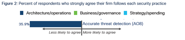 While it would be nice to state that most organizations are well-equipped in their ability to accurately track incidents, giving comfort to a nervous group of executives, the responses tell a more sobering tale. More than one-third of the respondents were less likely to agree that their organization follows the practice of accurate threat detection.