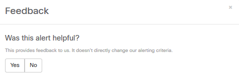 Stealthwatch Cloud was purpose-built to be a low-noise, valuable security solution. Every time a customer closes an alert, they see the most important dialog window in Stealthwatch Cloud: