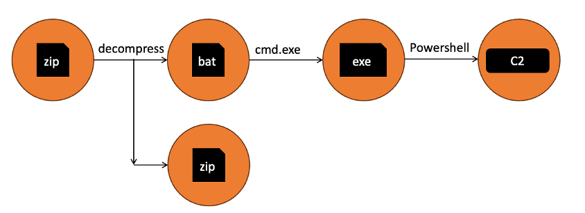 | Weaponization | Use of PowerShell, ZIP file, batch file | T1059.005 T1059.001 |