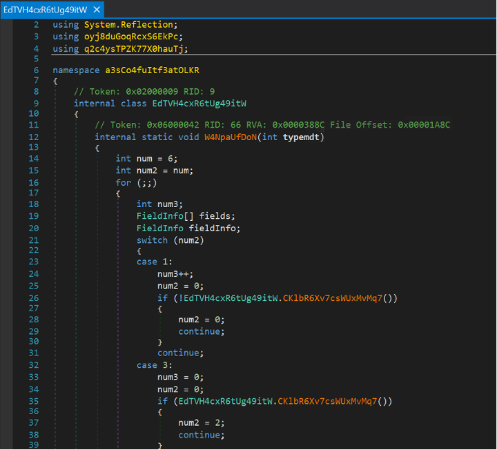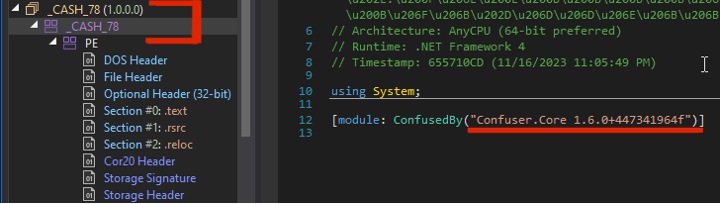 It is important to note that the sample did not contain a signature for ConfuserEx, yet it had an obfuscation method that resembled it.