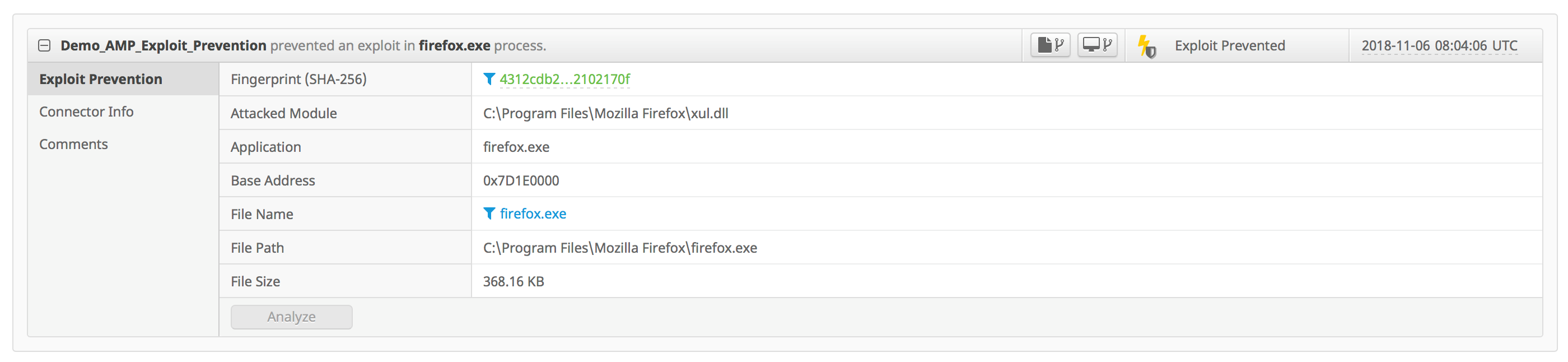 Strong prevention capability is one of the most highly-desired building blocks of any endpoint security offering. That may include preventing exploits (0-day or against unpatched vulnerabilities), evasive malware, and file-less attacks, all without relying on rules or signatures for detection. The Exploit Prevention engine, first introduced in AMP for Endpoints with the AMP Windows Connector version 6.0.5, has been enhanced to provide greater coverage against the evolving threat landscape. It does so by applying a truly proactive prevention technology, that does not affect system performance or imply compatibility issues. The ease of enabling Exploit Prevention and the value it provides has led to the rapid adoption, and we strive to continue improving the protection levels. Check back soon for a technical whitepaper on that strong prevention capability.