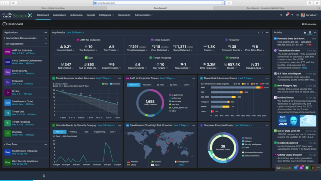 We wanted to break down these kinds of siloes that the teams work in, and at the same time make security more efficient. And Cisco SecureX does just that. At RSA 2020 this year we introduced Cisco SecureX – a new way for users to experience Cisco’s Security portfolio. Cisco SecureX streamlines our customers’ operations with unified visibility across their security portfolio and provides out-of-box integrations, powerful security analytics, and automated workflows to speed threat detection and response.