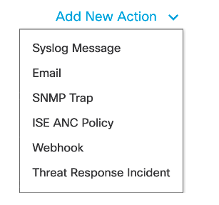 - Threat Response Incident: Sends Stealthwatch alarms to SecureX threat response with the ability to specify incident confidence levels and host information.