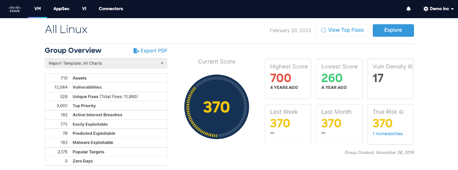 Cisco Vulnerability Management, a risk-based vulnerability management SaaS solution, prioritizes vulnerabilities that pose a real risk, enabling Security and IT teams to focus their limited resources on what matters most for efficient remediation and risk reduction. With risk scoring powered by data science—machine learning and patented approaches to predictive modeling—Cisco’s prioritization evaluates both enterprise data and a wealth of data on real-world exploit activity and then translates that context into actionable intelligence to guide remediation decisions and resource allocation. Data from tools like Amazon Inspector can be easily ingested into Cisco Vulnerability Management for a holistic approach to risk-based prioritization.