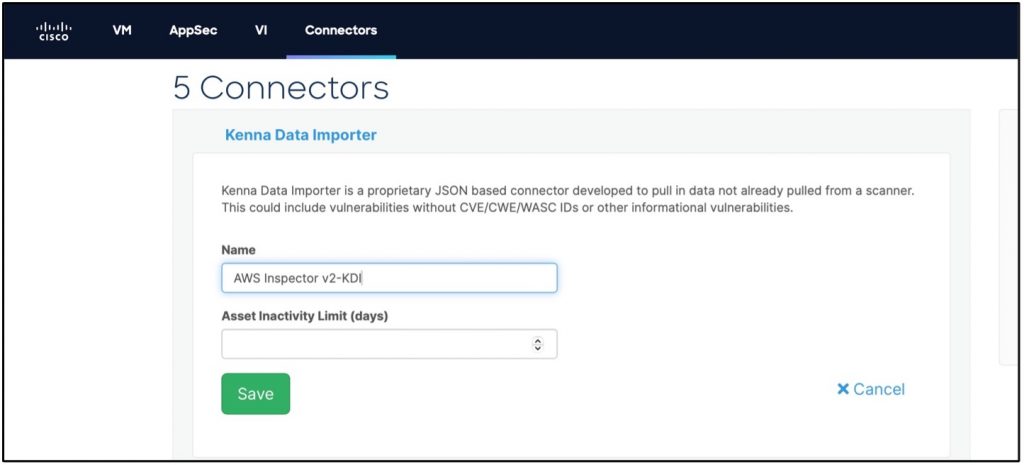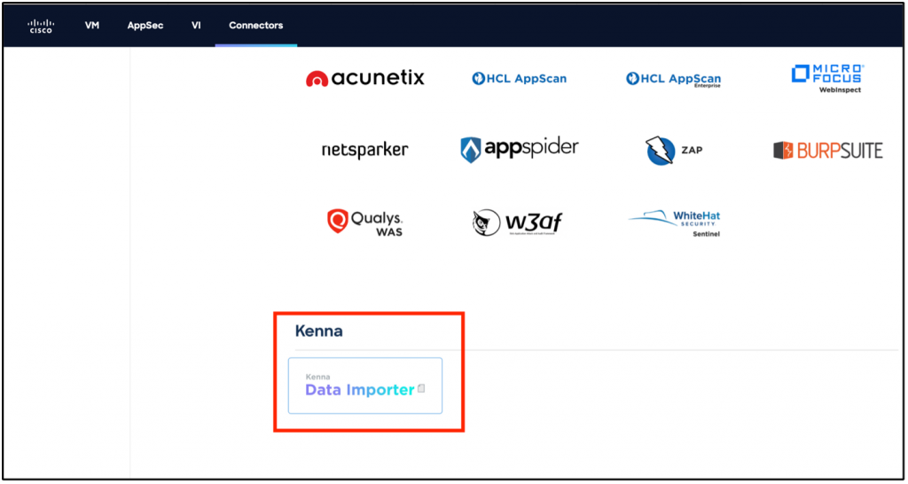 Click the Data Importer connector under the Connectors tab in Cisco Vulnerability Management: