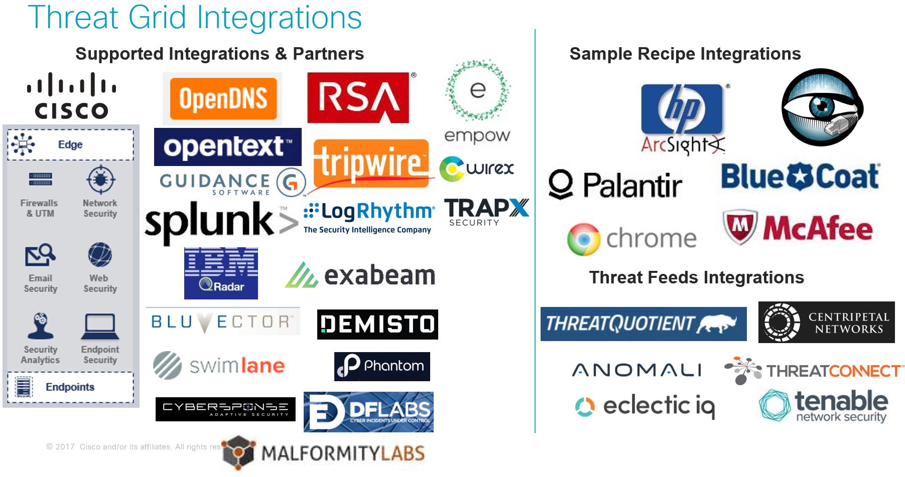 The mission of Cisco is to deliver Effective Cybersecurity that is Simple, Open and Automated. In my daily work at Cisco, my team and I execute on the Open and Automated mission pillars every day, building our ecosystem of technology partners with the Threat Grid RESTful API. Cisco has a Solution Partner Program, where member partners are able to create a Marketplace page with information on the integration and submit their solution for compatibility testing. Several partners have undergone the process of verification, with more joining the program every quarter.